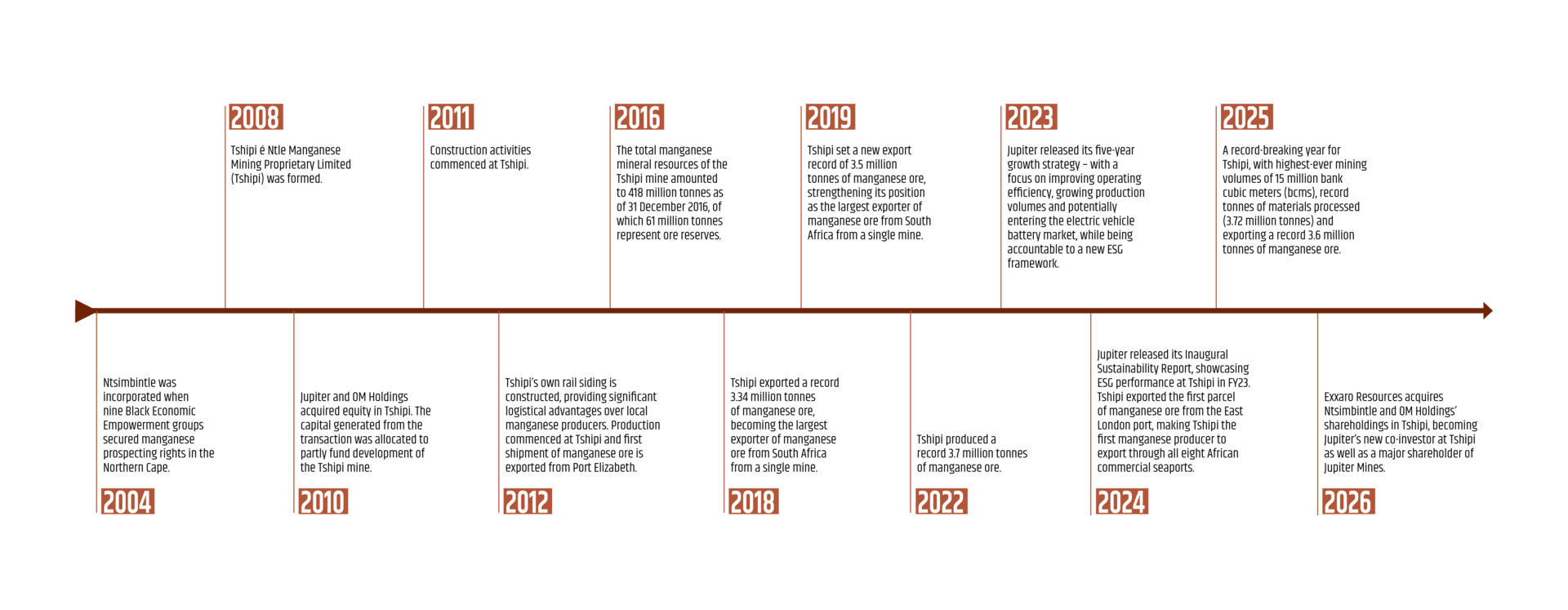 Our Investment in a World-Class Manganese Operation Jupiter Mines’ history is closely tied to the development of the Tshipi Manganese Mine in South Africa’s Northern Cape.